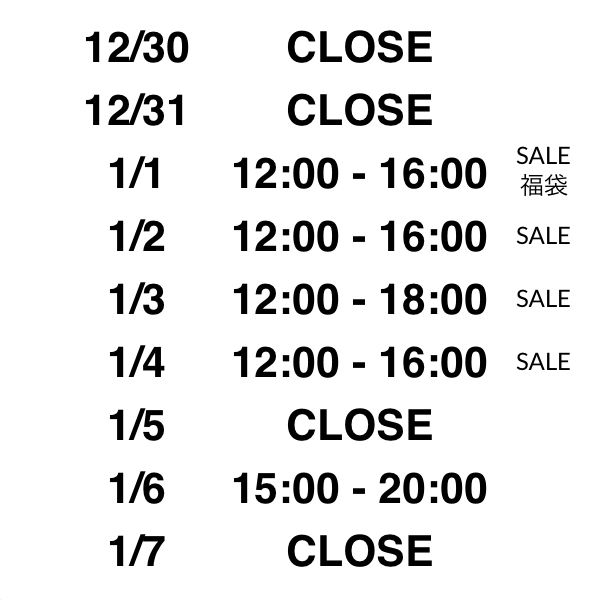 年始は営業時間がイレギュラーになりますので、お間違えのないようお願い申し上げます。