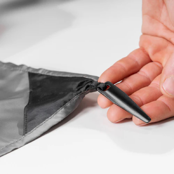 四隅にポケットがあり、石などを入れて風で飛ばされるのを防ぎます。