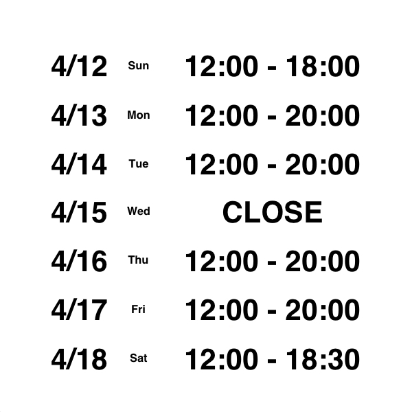 4/12〜4/18の営業案内になります。