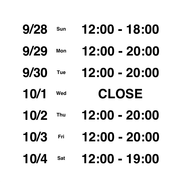 9月28日〜10月4日 営業案内 2025/9/27 |お知らせ ご利用いただきまして、誠にありがとうございます。 9/28〜10/4の営業案内になります。 Tag:お知らせ « Previous Next »